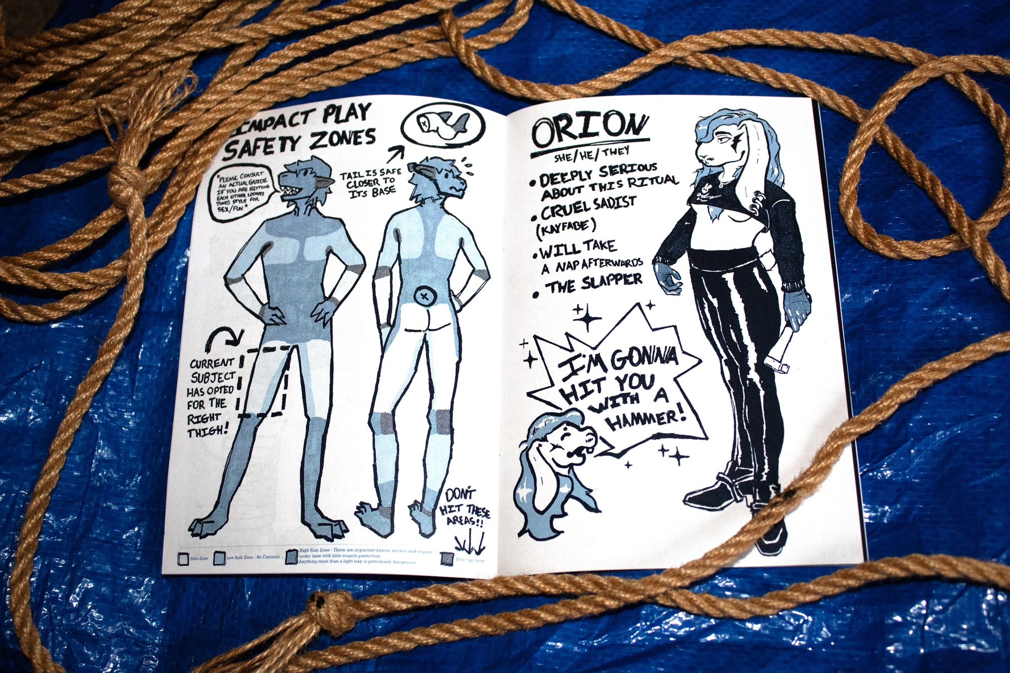 A zine about my intoxicating personal experience with Hog-Slapping. A tattoo method that combines S&M, impact play, and of course Body Mod. Wanna see a Dyke get hit with a hammer? Consider taking a peek.