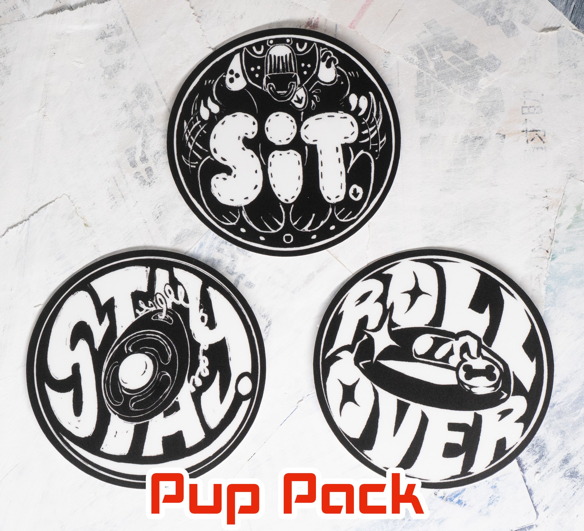 Pup Pack - 3 sticker bundle including SIT, STAY, and ROLL OVER